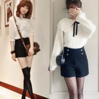 ShareOut of stock Japanese brand rosebullet versatile classic style double-button black high-waisted wool short pants classic black color wool shorts pants